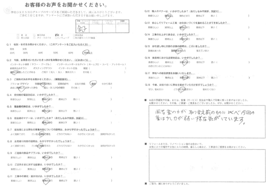 お店の雰囲気や印象。または、営業(サービス)担当者や職人で印象に残った者がおりましたら、お聞かせください。その他、ご要望・ご意見などございましたら、ぜひ、お聞かせください。