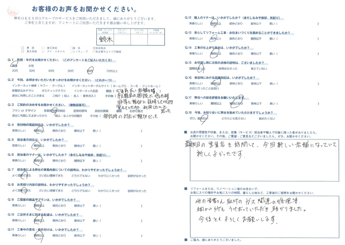 お店の雰囲気や印象。または、営業(サービス)担当者や職人で印象に残った者がおりましたら、お聞かせください。その他、ご要望・ご意見などございましたら、ぜひ、お聞かせください。