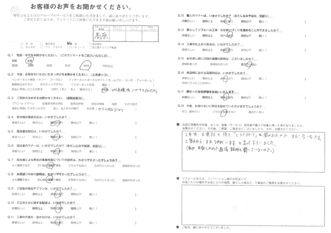 お店の雰囲気や印象。または、営業(サービス)担当者や職人で印象に残った者がおりましたら、お聞かせください。その他、ご要望・ご意見などございましたら、ぜひ、お聞かせください。