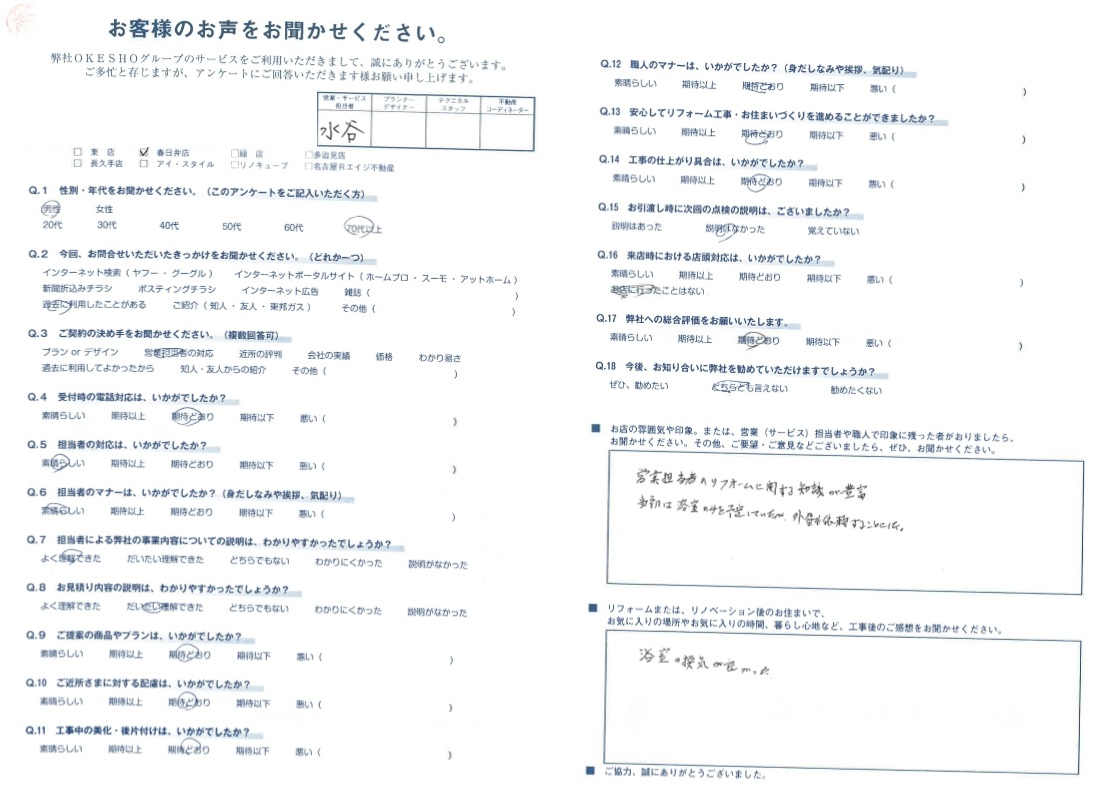 お店の雰囲気や印象。または、営業(サービス)担当者や職人で印象に残った者がおりましたら、お聞かせください。その他、ご要望・ご意見などございましたら、ぜひ、お聞かせください。