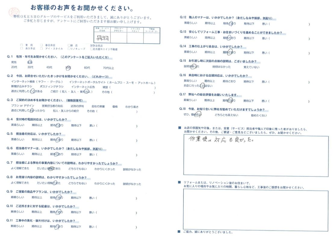 お客様アンケート一覧