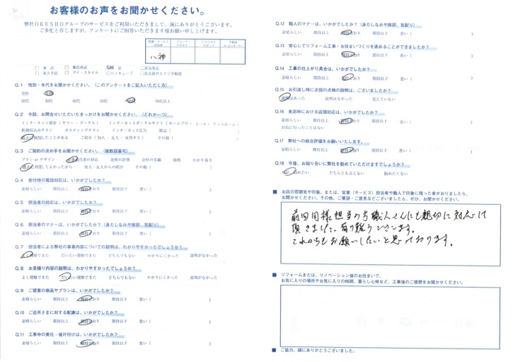 お店の雰囲気や印象。または、営業(サービス)担当者や職人で印象に残った者がおりましたら、お聞かせください。その他、ご要望・ご意見などございましたら、ぜひ、お聞かせください。