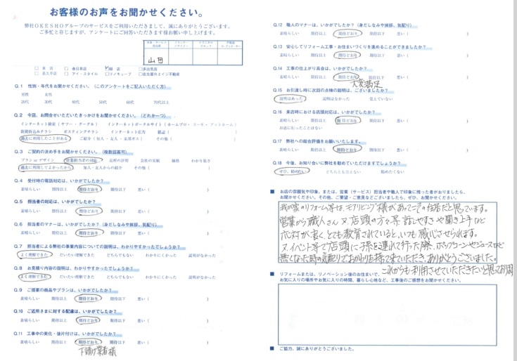 お店の雰囲気や印象。または、営業(サービス)担当者や職人で印象に残った者がおりましたら、お聞かせください。その他、ご要望・ご意見などございましたら、ぜひ、お聞かせください。