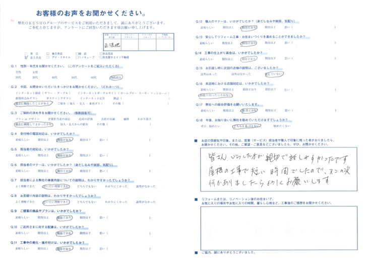 お店の雰囲気や印象。または、営業(サービス)担当者や職人で印象に残った者がおりましたら、お聞かせください。その他、ご要望・ご意見などございましたら、ぜひ、お聞かせください。