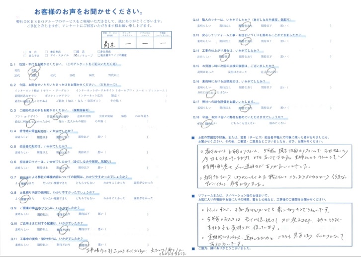 ○高木さんには6年前のリフォーム、5年前の風呂洗面台リフォームでお世話になり 今回も担当していただけて とても安心できました。夫婦とも忙しいので時間の配慮やメール連絡など ありがたいことでした。