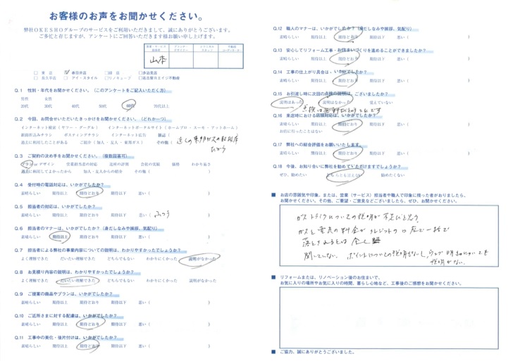 お店の雰囲気や印象。または、営業(サービス)担当者や職人で印象に残った者がおりましたら、お聞かせください。その他、ご要望・ご意見などございましたら、ぜひ、お聞かせください。
