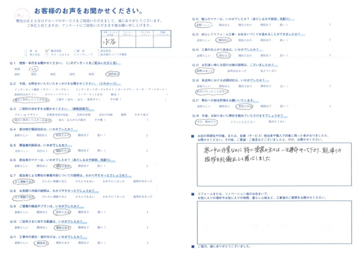 お店の雰囲気や印象。または、営業(サービス)担当者や職人で印象に残った者がおりましたら、お聞かせください。その他、ご要望・ご意見などございましたら、ぜひ、お聞かせください。