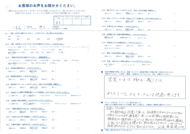 お店の雰囲気や印象。または、営業(サービス)担当者や職人で印象に残った者がおりましたら、お聞かせください。その他、ご要望・ご意見などございましたら、ぜひ、お聞かせください。
