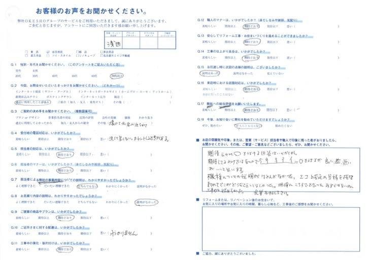 お店の雰囲気や印象。または、営業(サービス)担当者や職人で印象に残った者がおりましたら、お聞かせください。その他、ご要望・ご意見などございましたら、ぜひ、お聞かせください。