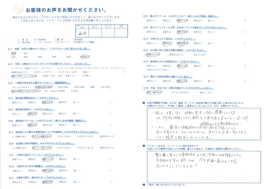 繁忙期に重なり 工事期間が2ヶ月(実働は10日程度)となり不自由な生活が続いたが、今は快適に暮らしています。