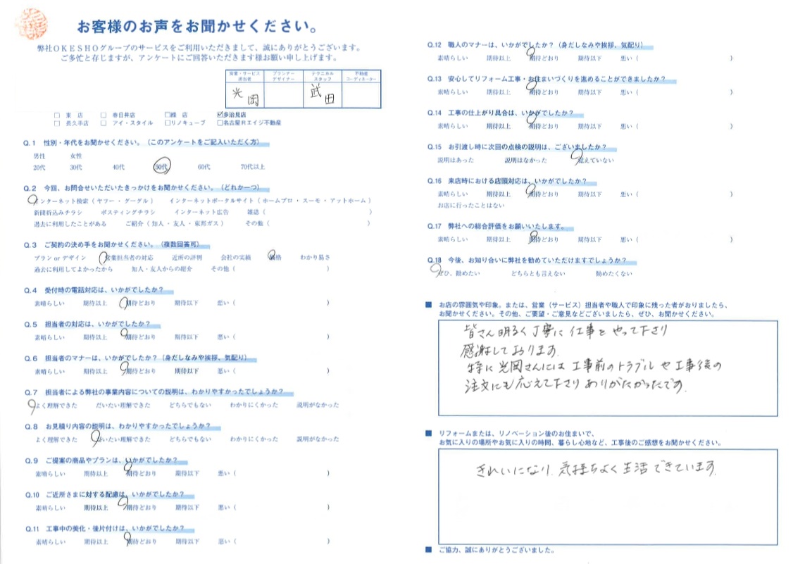 特に 光岡さんには 工事前のトラブルや工事後の注文にも応えて下さり ありがたかったです。