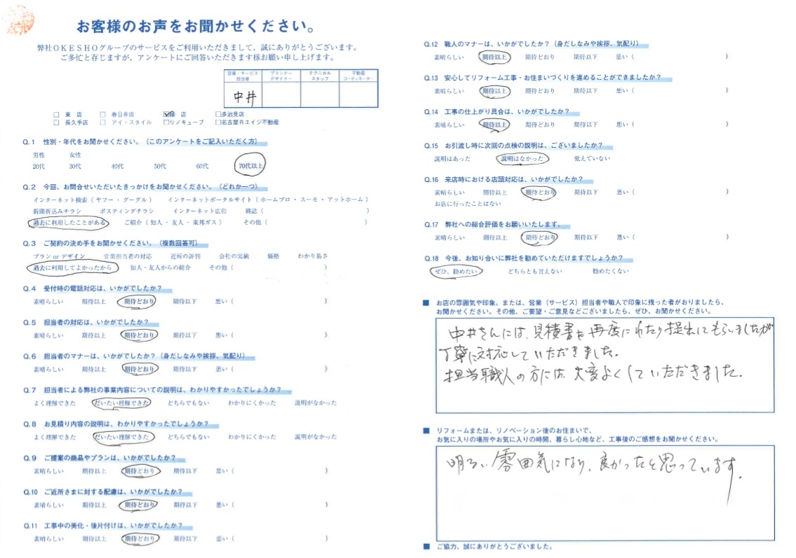 お店の雰囲気や印象。または、営業(サービス)担当者や職人で印象に残った者がおりましたら、お聞かせください。その他、ご要望・ご意見などございましたら、ぜひ、お聞かせください。
