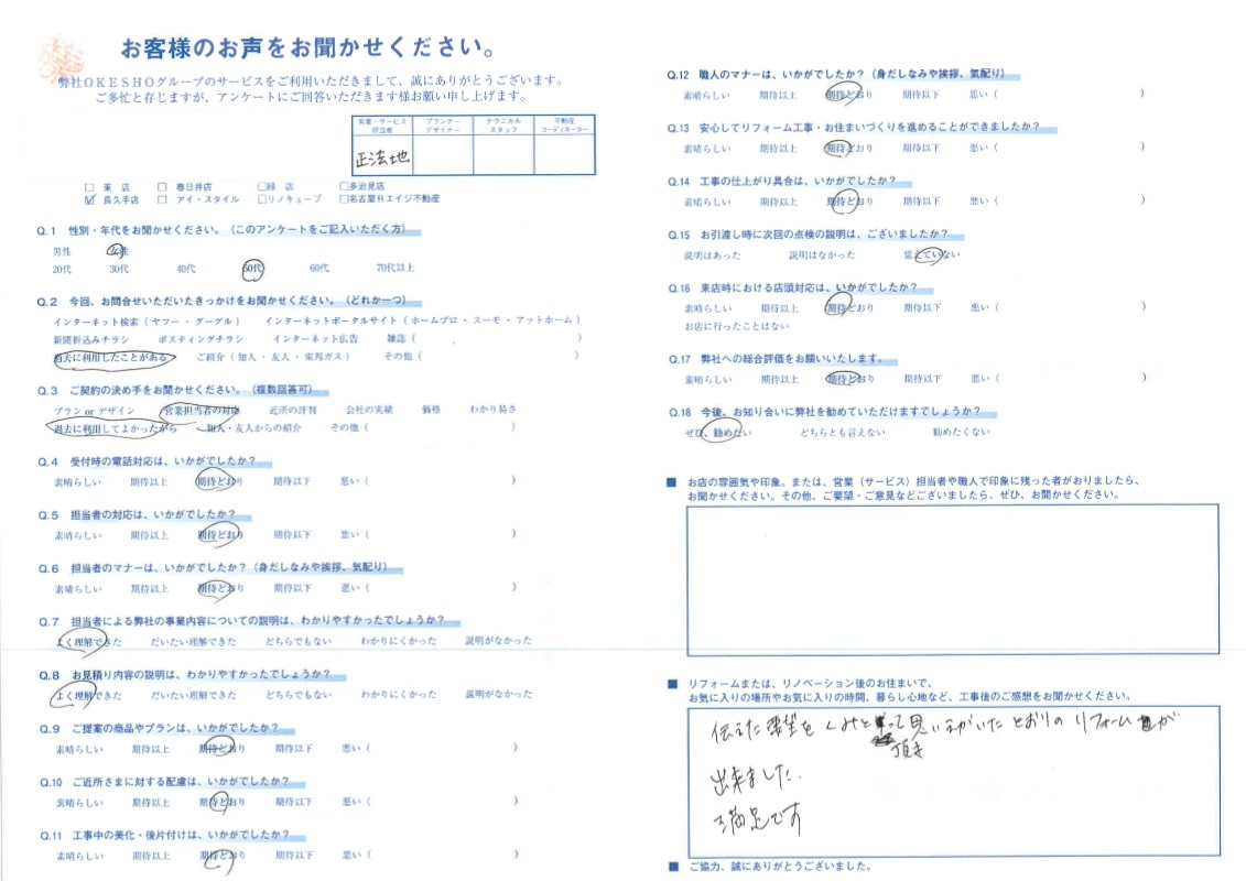 伝えた要望をくみとって頂き 思いえがいたとおりのリフォームが出来ました。満足です。