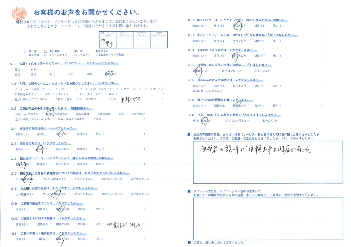 お店の雰囲気や印象。または、営業(サービス)担当者や職人で印象に残った者がおりましたら、お聞かせください。その他、ご要望・ご意見などございましたら、ぜひ、お聞かせください。