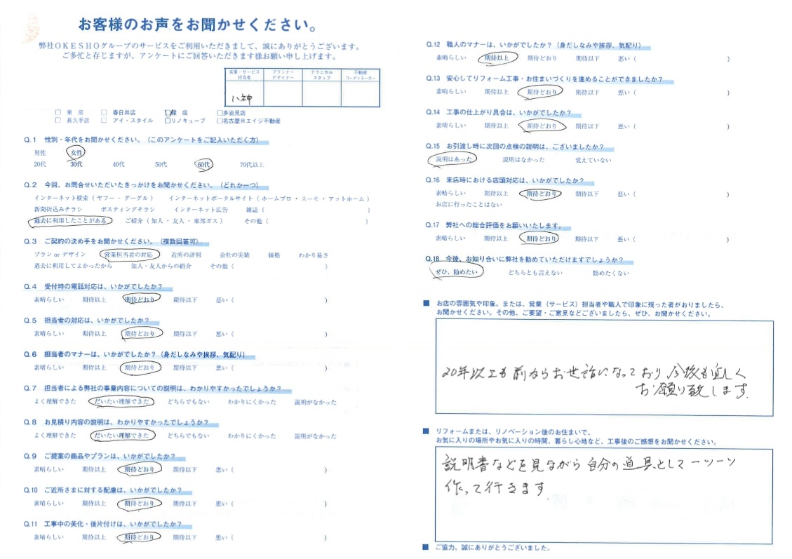 お店の雰囲気や印象。または、営業(サービス)担当者や職人で印象に残った者がおりましたら、お聞かせください。その他、ご要望・ご意見などございましたら、ぜひ、お聞かせください。