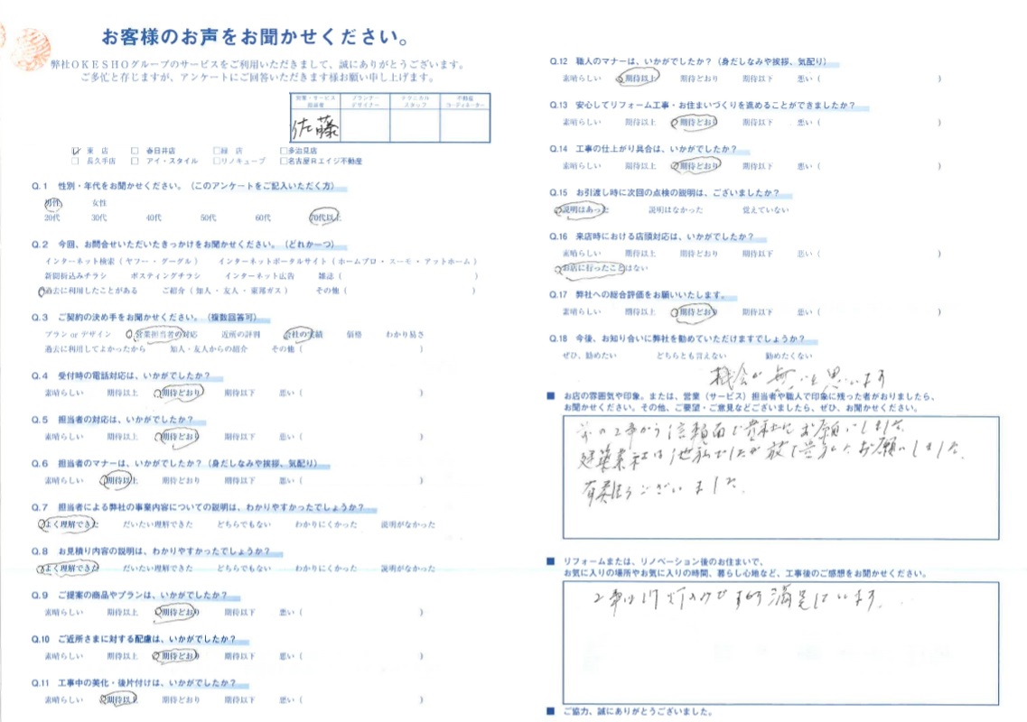 お店の雰囲気や印象。または、営業(サービス)担当者や職人で印象に残った者がおりましたら、お聞かせください。その他、ご要望・ご意見などございましたら、ぜひ、お聞かせください。