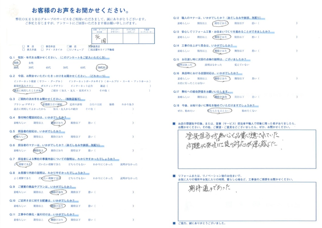 お店の雰囲気や印象。または、営業(サービス)担当者や職人で印象に残った者がおりましたら、お聞かせください。その他、ご要望・ご意見などございましたら、ぜひ、お聞かせください。
