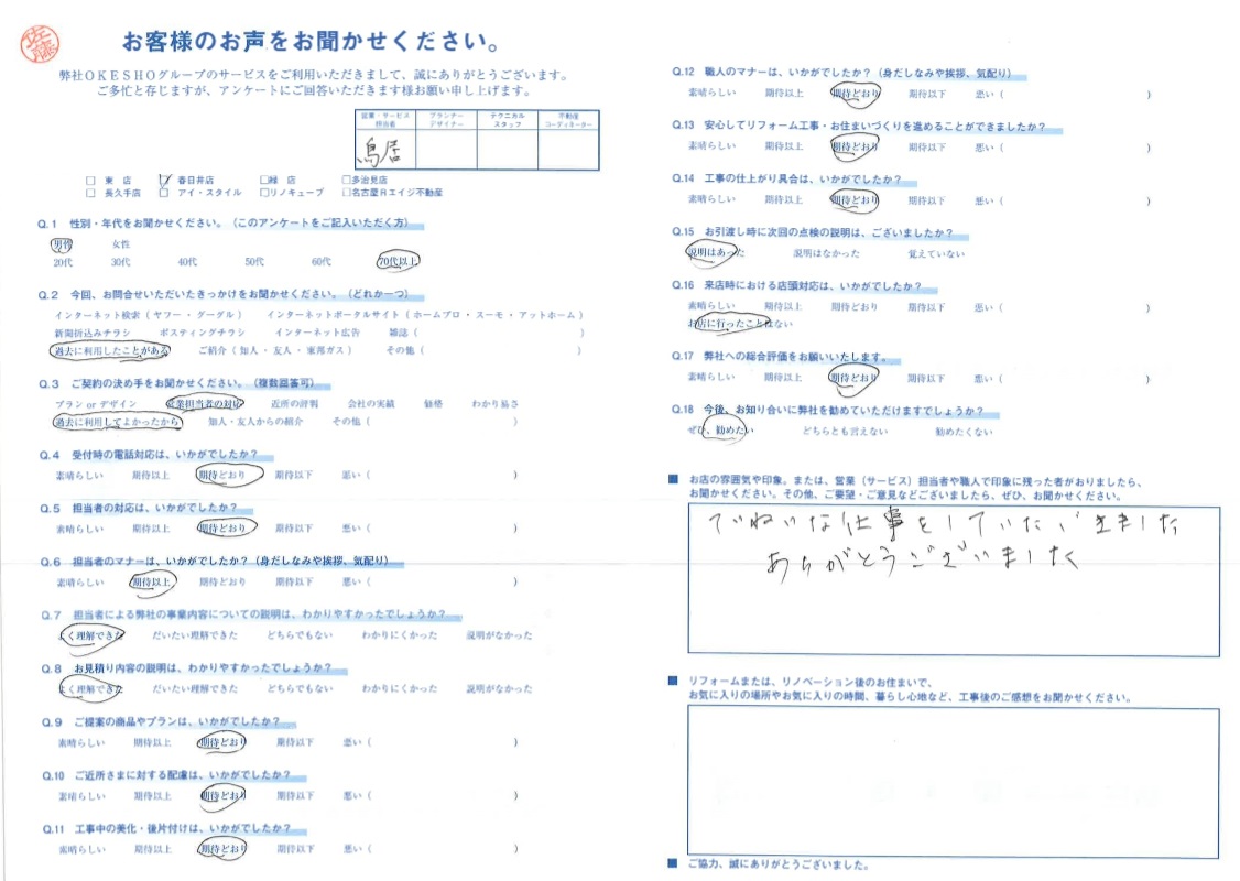 お客様アンケート一覧