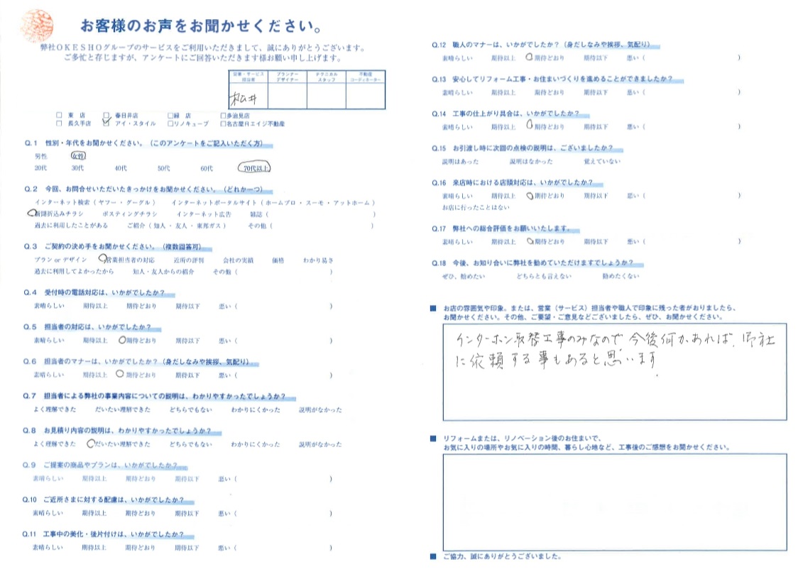 お客様アンケート一覧