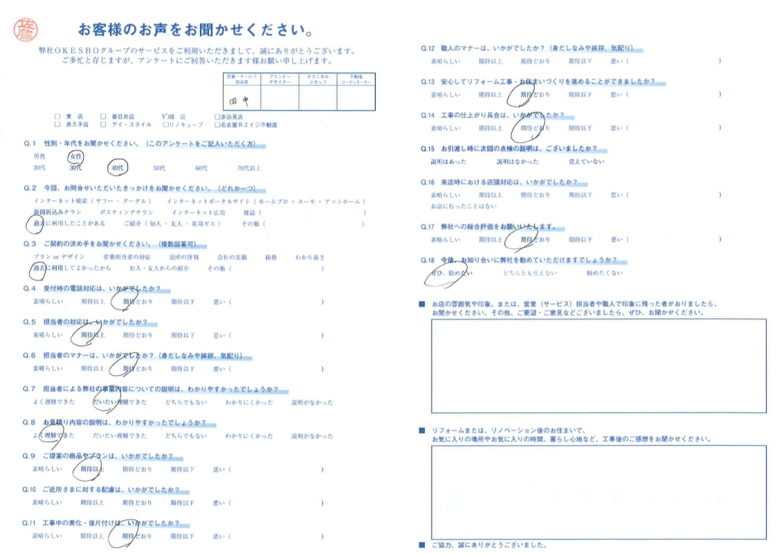 お客様アンケート一覧