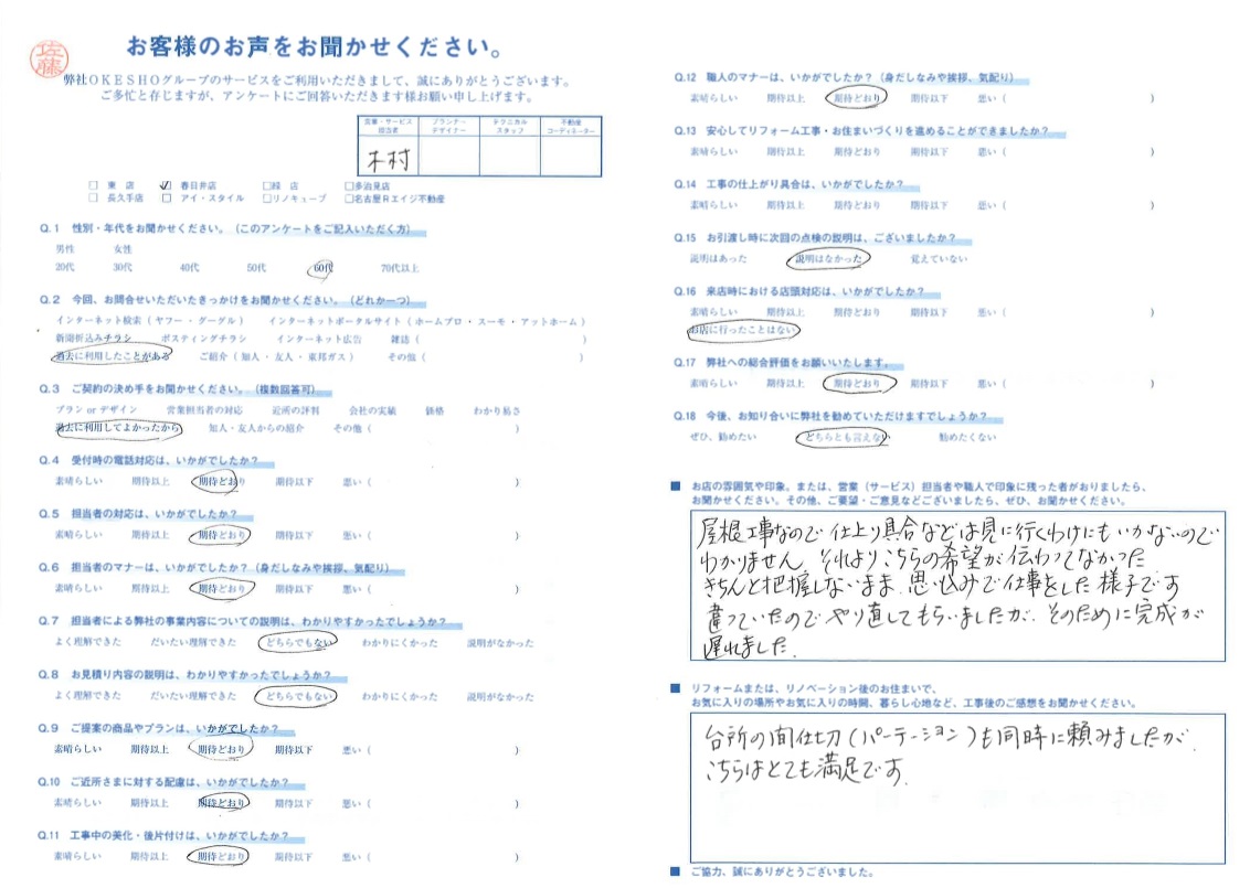 お店の雰囲気や印象。または、営業(サービス)担当者や職人で印象に残った者がおりましたら、お聞かせください。その他、ご要望・ご意見などございましたら、ぜひ、お聞かせください。