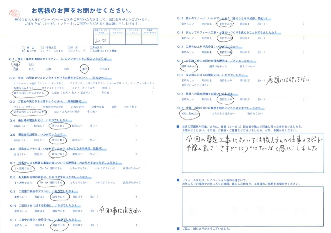 お店の雰囲気や印象。または、営業(サービス)担当者や職人で印象に残った者がおりましたら、お聞かせください。その他、ご要望・ご意見などございましたら、ぜひ、お聞かせください。