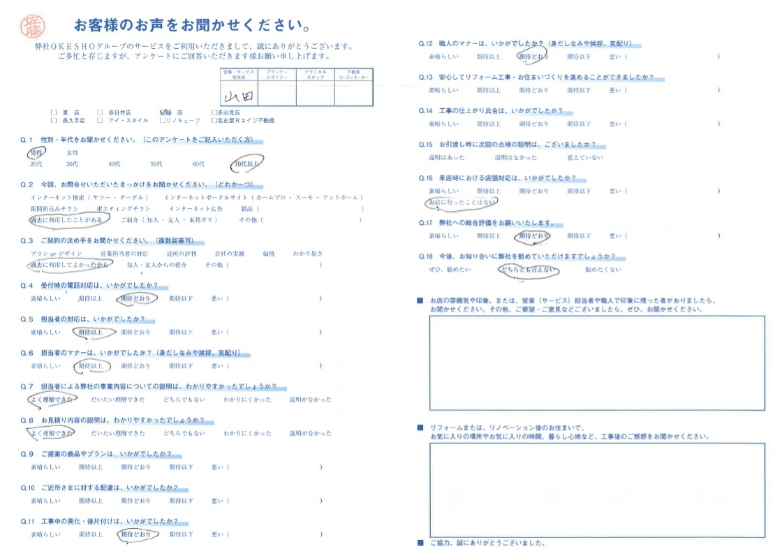 お客様アンケート一覧