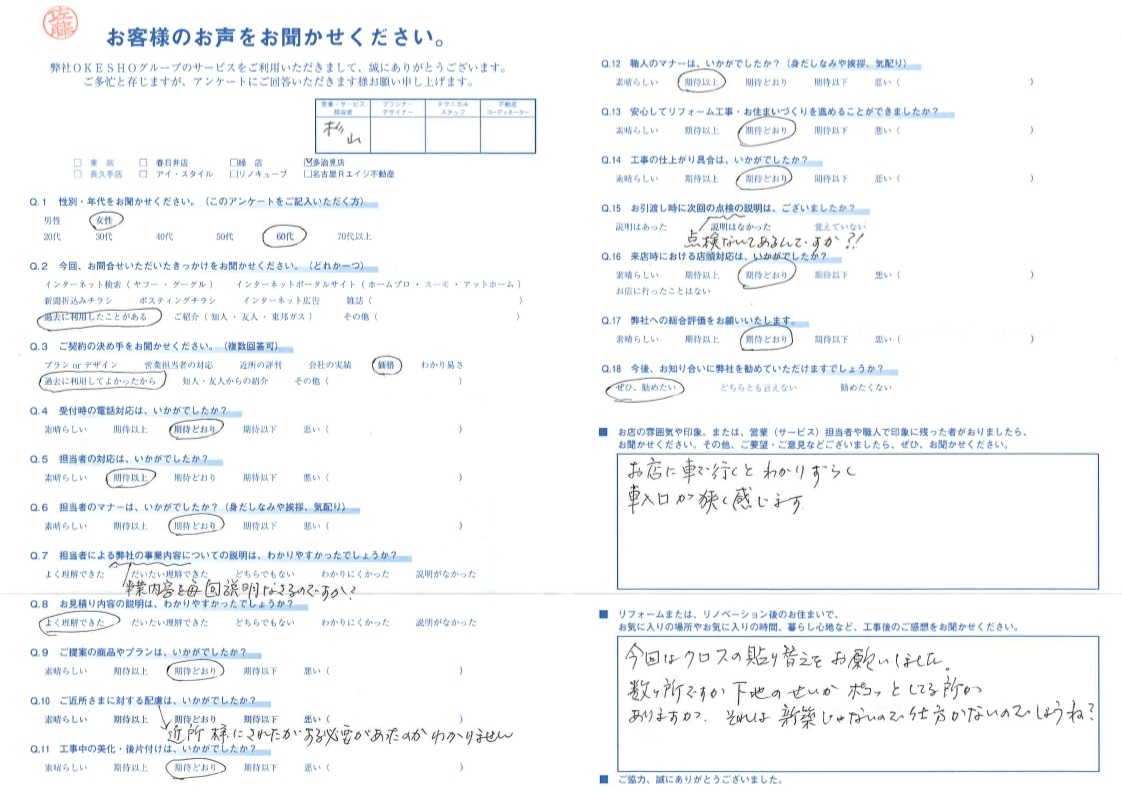 お店の雰囲気や印象。または、営業(サービス)担当者や職人で印象に残った者がおりましたら、お聞かせください。その他、ご要望・ご意見などございましたら、ぜひ、お聞かせください。