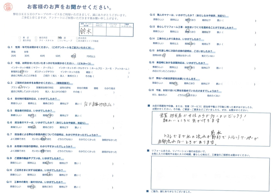 お店の雰囲気や印象。または、営業(サービス)担当者や職人で印象に残った者がおりましたら、お聞かせください。その他、ご要望・ご意見などございましたら、ぜひ、お聞かせください。