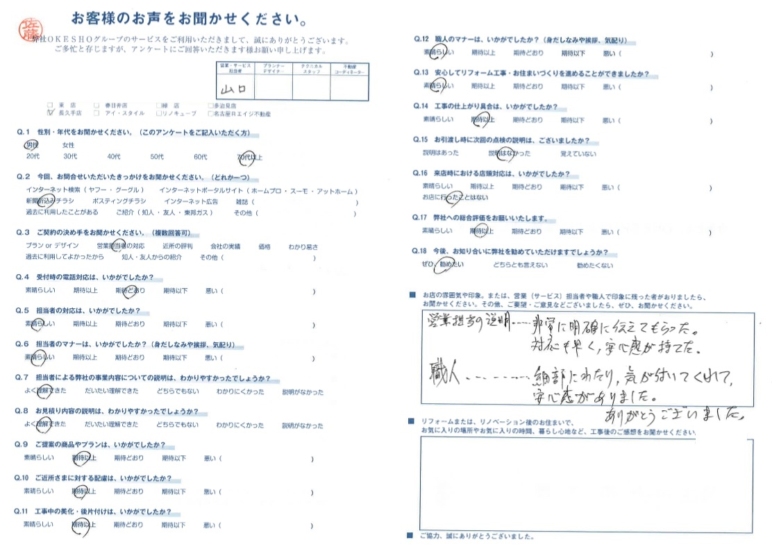 職人……細部にわたり気が付いてくれて、安心感がありました。
