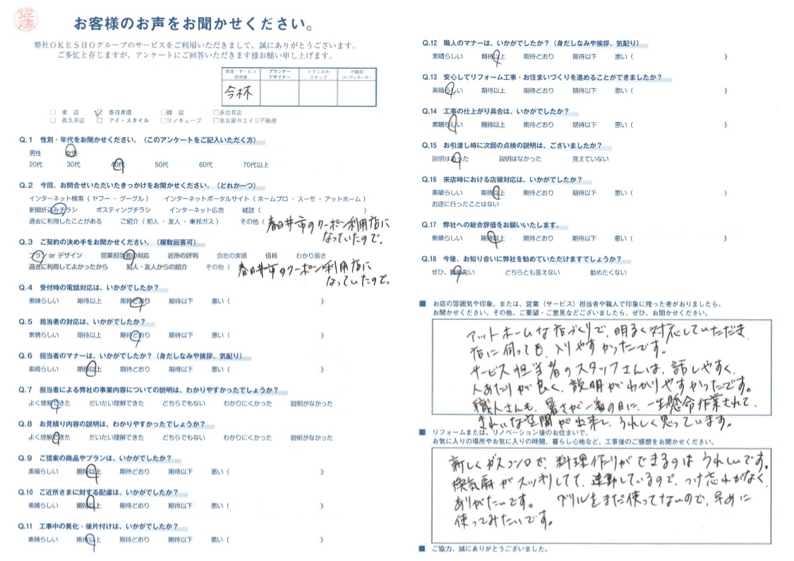 お店の雰囲気や印象。または、営業(サービス)担当者や職人で印象に残った者がおりましたら、お聞かせください。その他、ご要望・ご意見などございましたら、ぜひ、お聞かせください。