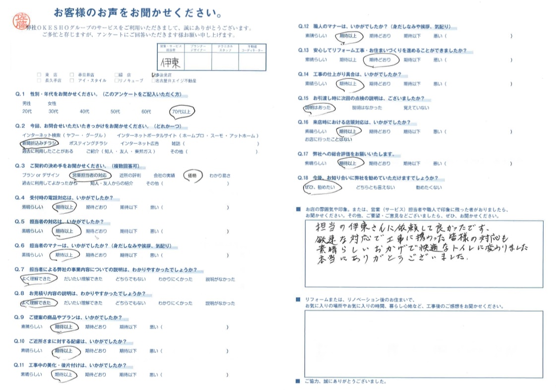 敏速な対応で 工事に携わった皆様の対応も素晴らしいおかげで 快適なトイレに変わりました。本当にありがとうございました。