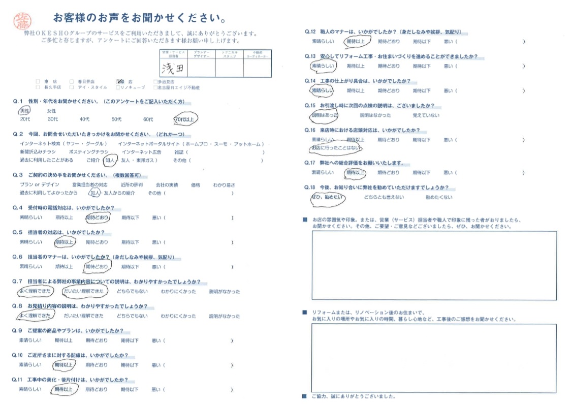 お客様アンケート一覧