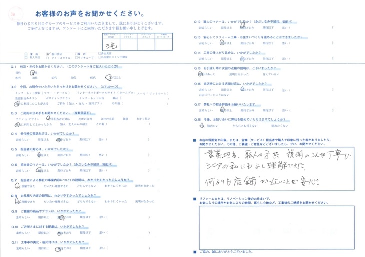 営業担当、職人の方共 説明のこん切丁寧でシニアの私にも よく理解できた。
