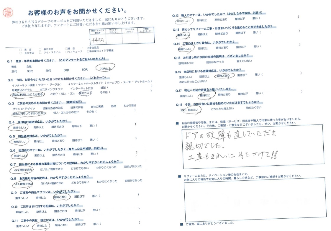 お店の雰囲気や印象。または、営業(サービス)担当者や職人で印象に残った者がおりましたら、お聞かせください。その他、ご要望・ご意見などございましたら、ぜひ、お聞かせください。