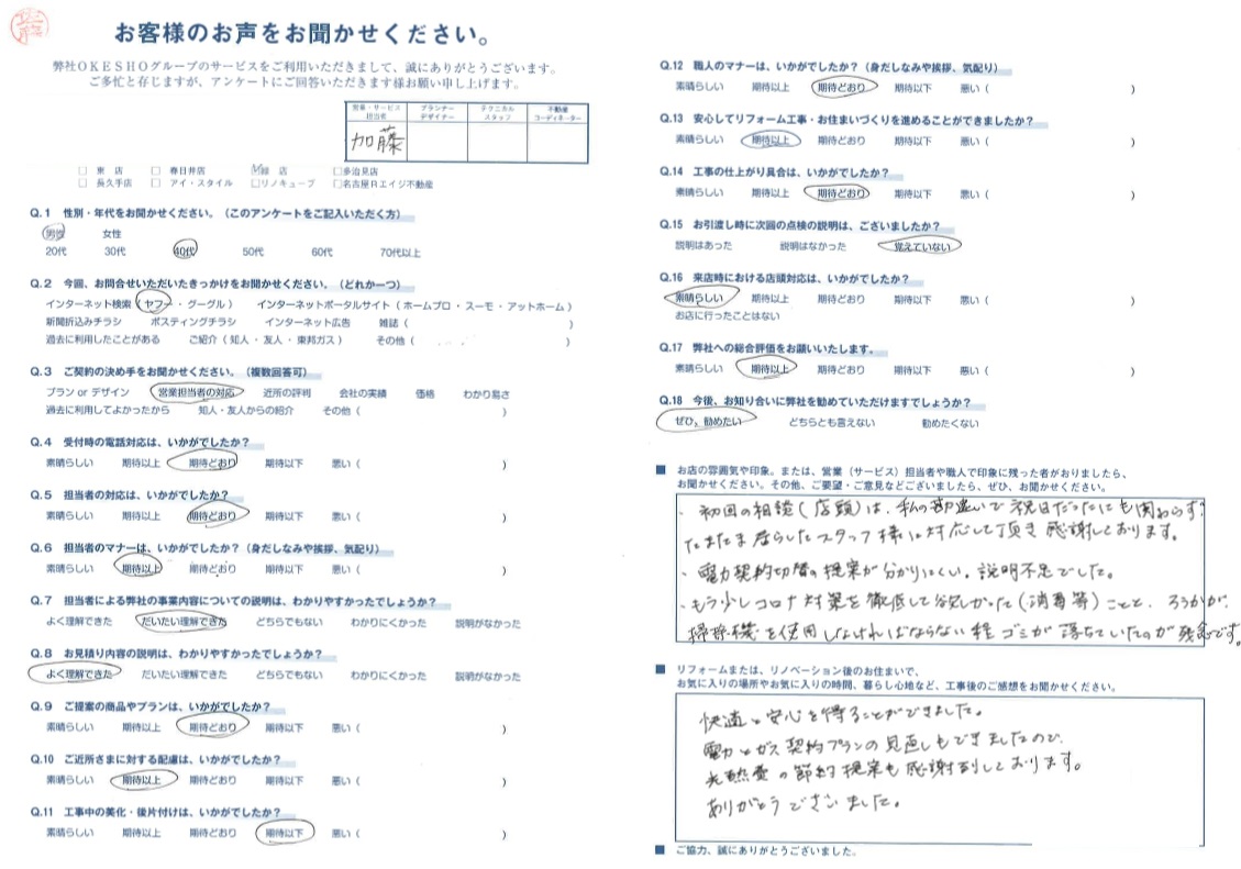 電力とガス契約プランの見直しもできましたので、光熱費の節約提案も感謝致しております。