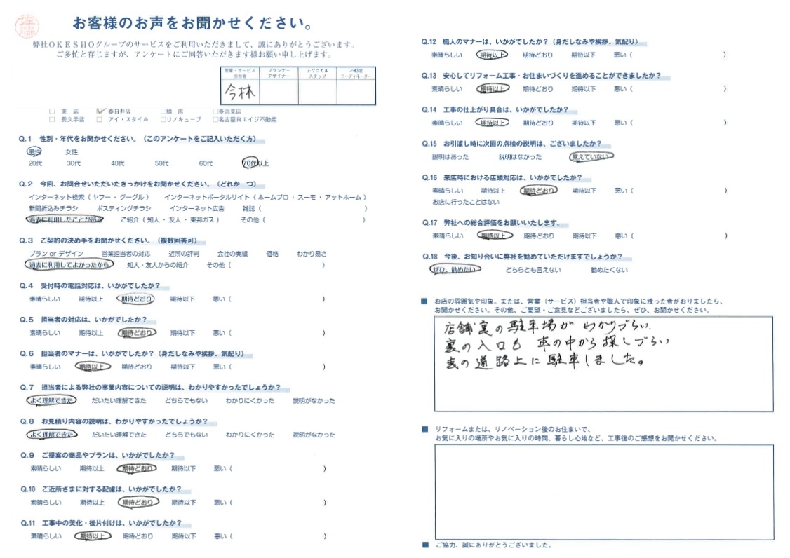 お店の雰囲気や印象。または、営業(サービス)担当者や職人で印象に残った者がおりましたら、お聞かせください。その他、ご要望・ご意見などございましたら、ぜひ、お聞かせください。