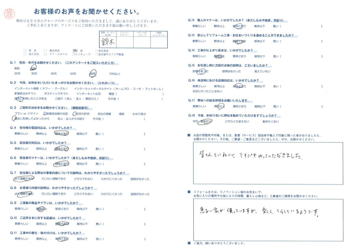 お店の雰囲気や印象。または、営業(サービス)担当者や職人で印象に残った者がおりましたら、お聞かせください。その他、ご要望・ご意見などございましたら、ぜひ、お聞かせください。
