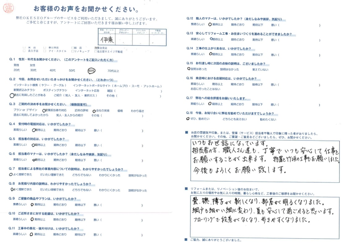 お店の雰囲気や印象。または、営業(サービス)担当者や職人で印象に残った者がおりましたら、お聞かせください。その他、ご要望・ご意見などございましたら、ぜひ、お聞かせください。
