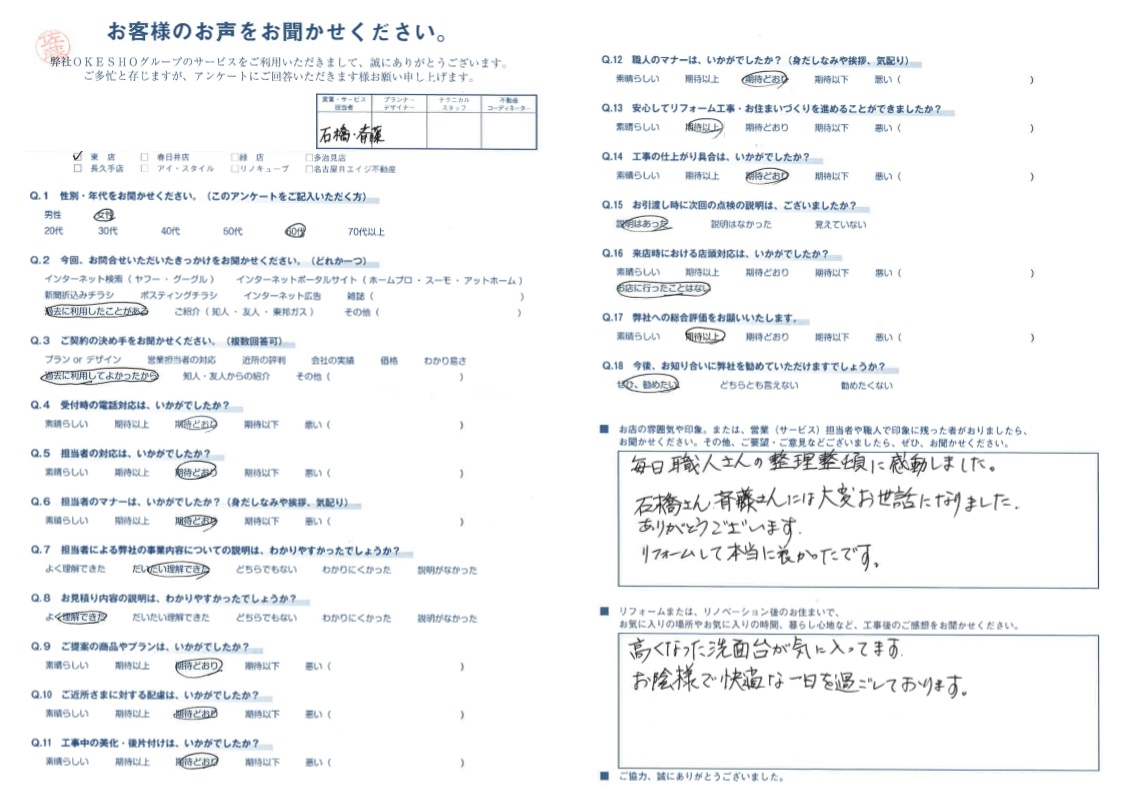 お店の雰囲気や印象。または、営業(サービス)担当者や職人で印象に残った者がおりましたら、お聞かせください。その他、ご要望・ご意見などございましたら、ぜひ、お聞かせください。