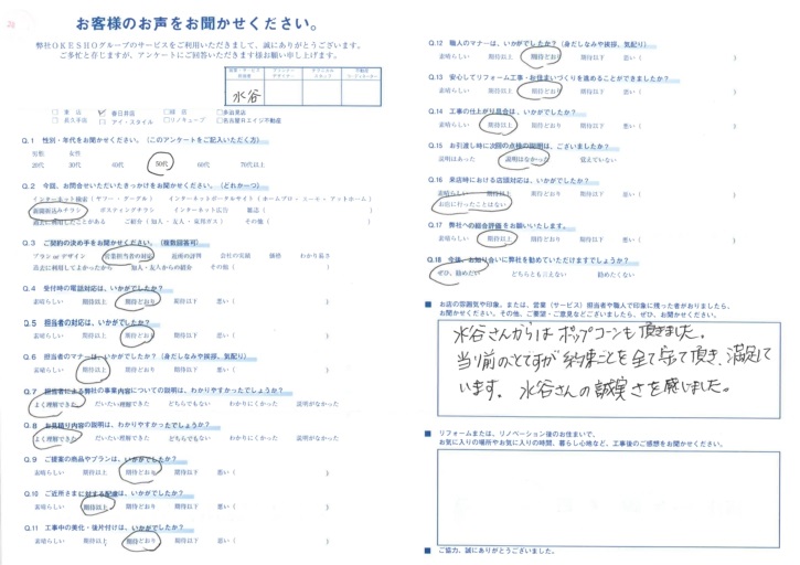 当り前のことですが 約束ごとを全て守って頂き、満足しています。水谷さんの誠実さを感じました。