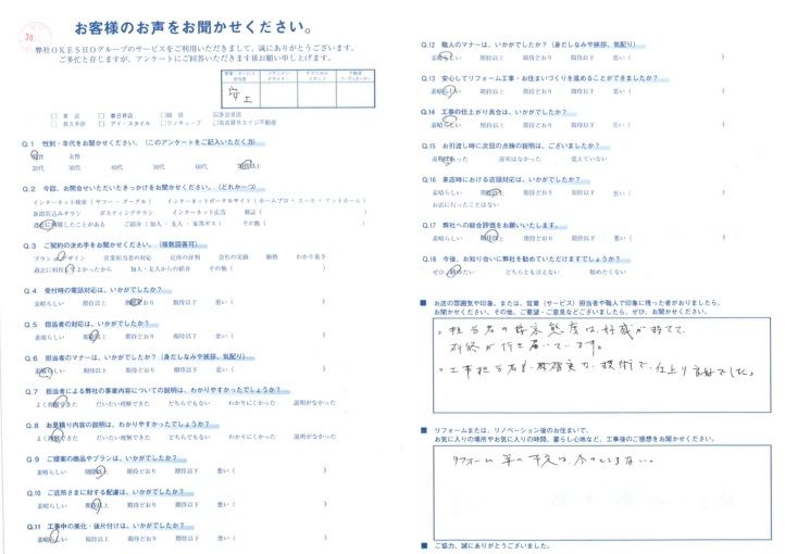 お店の雰囲気や印象。または、営業(サービス)担当者や職人で印象に残った者がおりましたら、お聞かせください。その他、ご要望・ご意見などございましたら、ぜひ、お聞かせください。