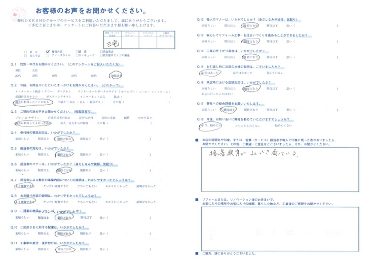 お店の雰囲気や印象。または、営業(サービス)担当者や職人で印象に残った者がおりましたら、お聞かせください。その他、ご要望・ご意見などございましたら、ぜひ、お聞かせください。