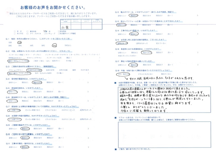 お店の雰囲気や印象。または、営業(サービス)担当者や職人で印象に残った者がおりましたら、お聞かせください。その他、ご要望・ご意見などございましたら、ぜひ、お聞かせください。