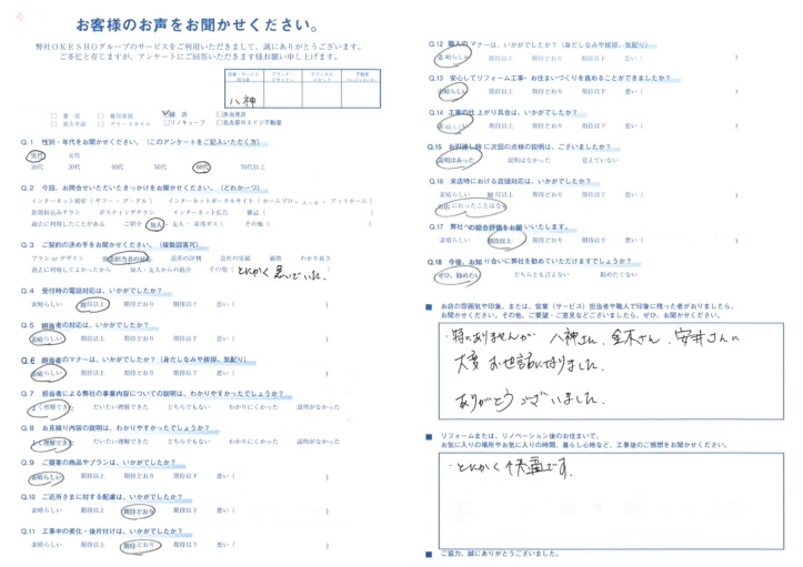 お店の雰囲気や印象。または、営業(サービス)担当者や職人で印象に残った者がおりましたら、お聞かせください。その他、ご要望・ご意見などございましたら、ぜひ、お聞かせください。