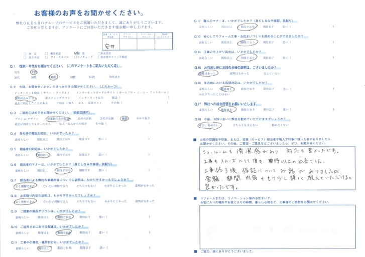 お店の雰囲気や印象。または、営業(サービス)担当者や職人で印象に残った者がおりましたら、お聞かせください。その他、ご要望・ご意見などございましたら、ぜひ、お聞かせください。