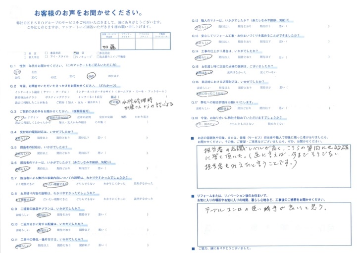 お店の雰囲気や印象。または、営業(サービス)担当者や職人で印象に残った者がおりましたら、お聞かせください。その他、ご要望・ご意見などございましたら、ぜひ、お聞かせください。