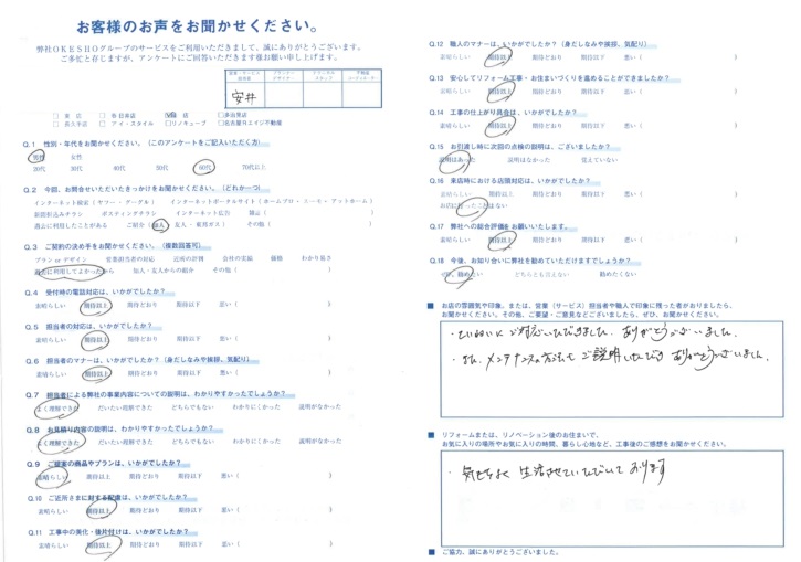 お店の雰囲気や印象。または、営業(サービス)担当者や職人で印象に残った者がおりましたら、お聞かせください。その他、ご要望・ご意見などございましたら、ぜひ、お聞かせください。