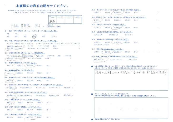 お店の雰囲気や印象。または、営業(サービス)担当者や職人で印象に残った者がおりましたら、お聞かせください。その他、ご要望・ご意見などございましたら、ぜひ、お聞かせください。