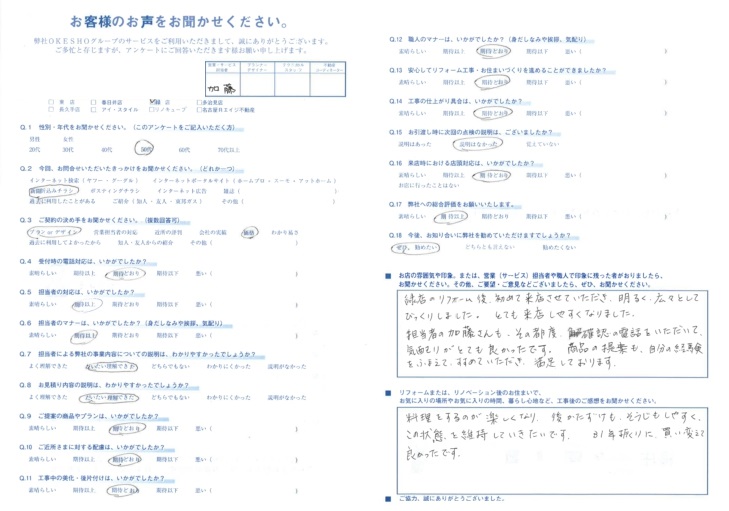 担当者の加藤さんも その都度 確認の電話をいただいて、気配りがとても良かったです。商品の提案も自分の経験をふまえてすすめていただき満足しております。